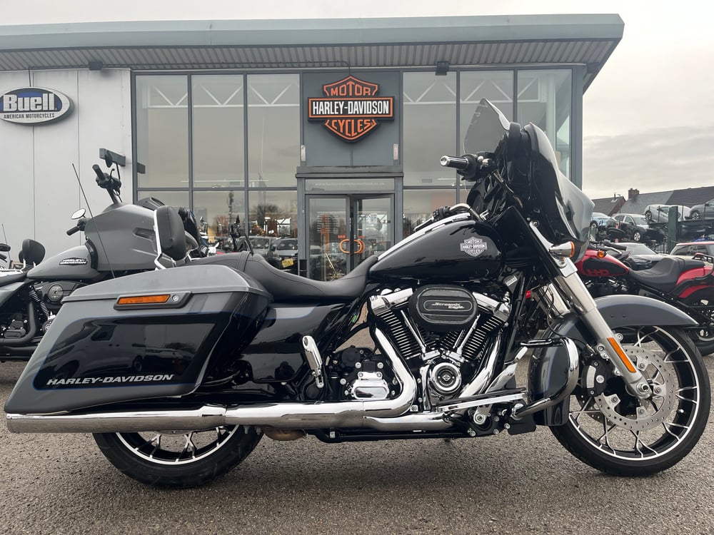 Available now: a stunning example of the 2022 Street Glide. This "hot rod" bagger is the perfect blend of stripped-down custom style and long-distance touring capability. Featuring the legendary Batwing fairing and the powerhouse Milwaukee-Eight® 114 engine, it’s built for those who want to command the motorway with presence and power.