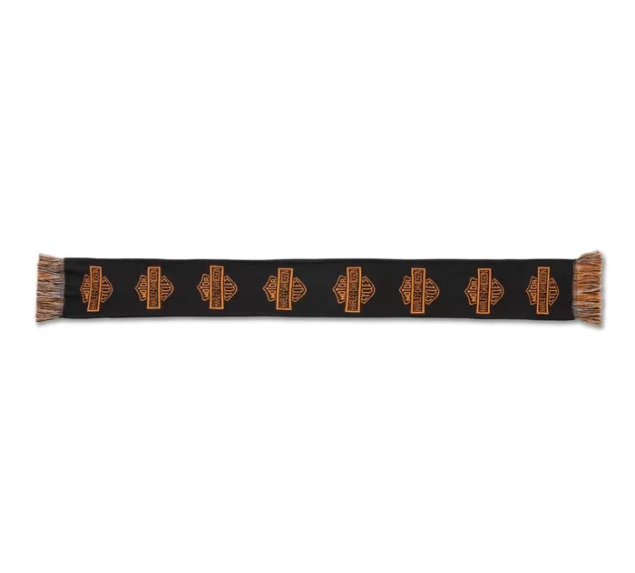 Bundle up in timeless style two ways with our Limited-Issue H-D Striker Scarf. Crafted from an acrylic knit blend to keep you warm without the itch or irritation of wool. It features multi-colored fringe trim and our graphics in a custom intarsia knit pattern on both sides for a versatile look that’s 100% Harley-Davidson. Snag yours now while supplies last.