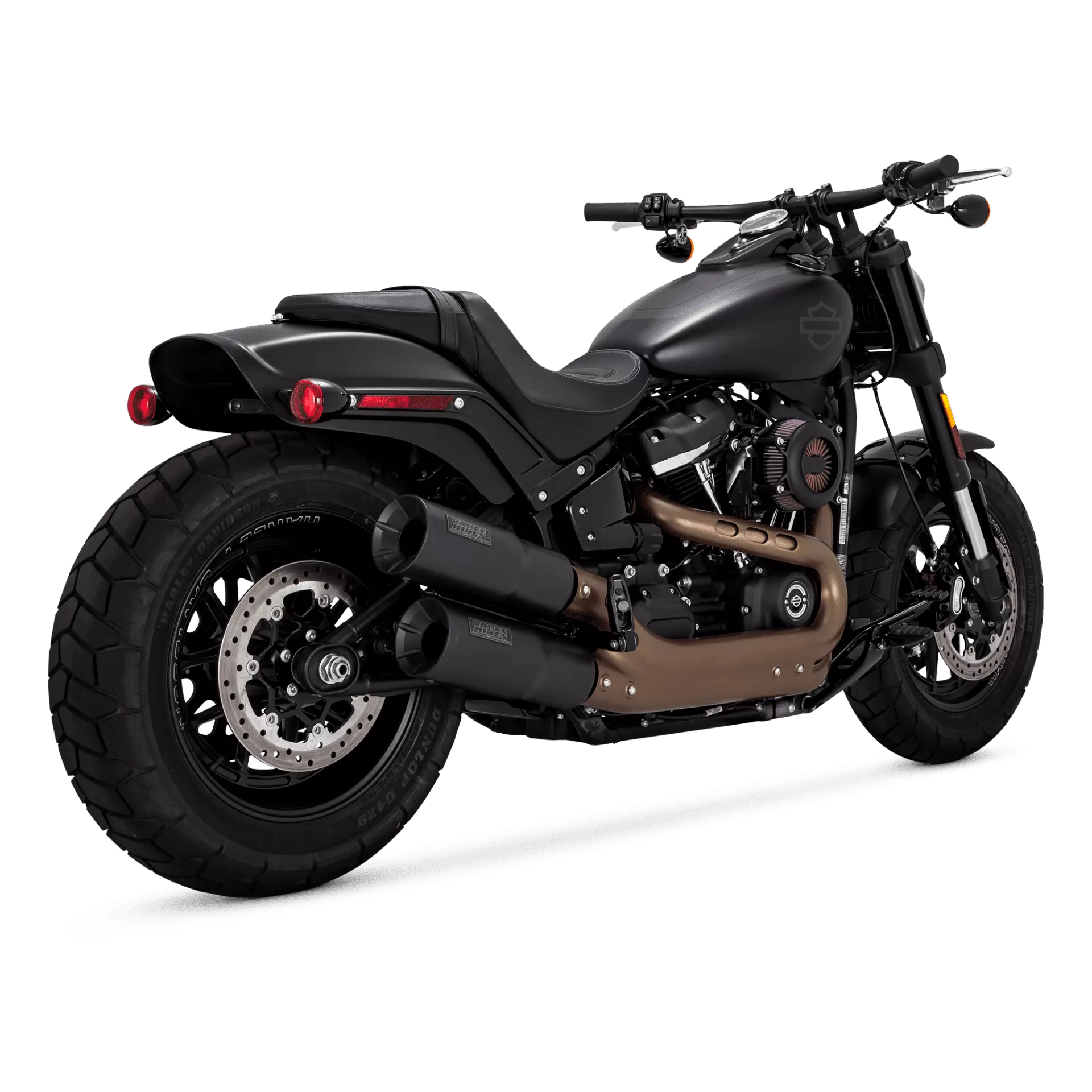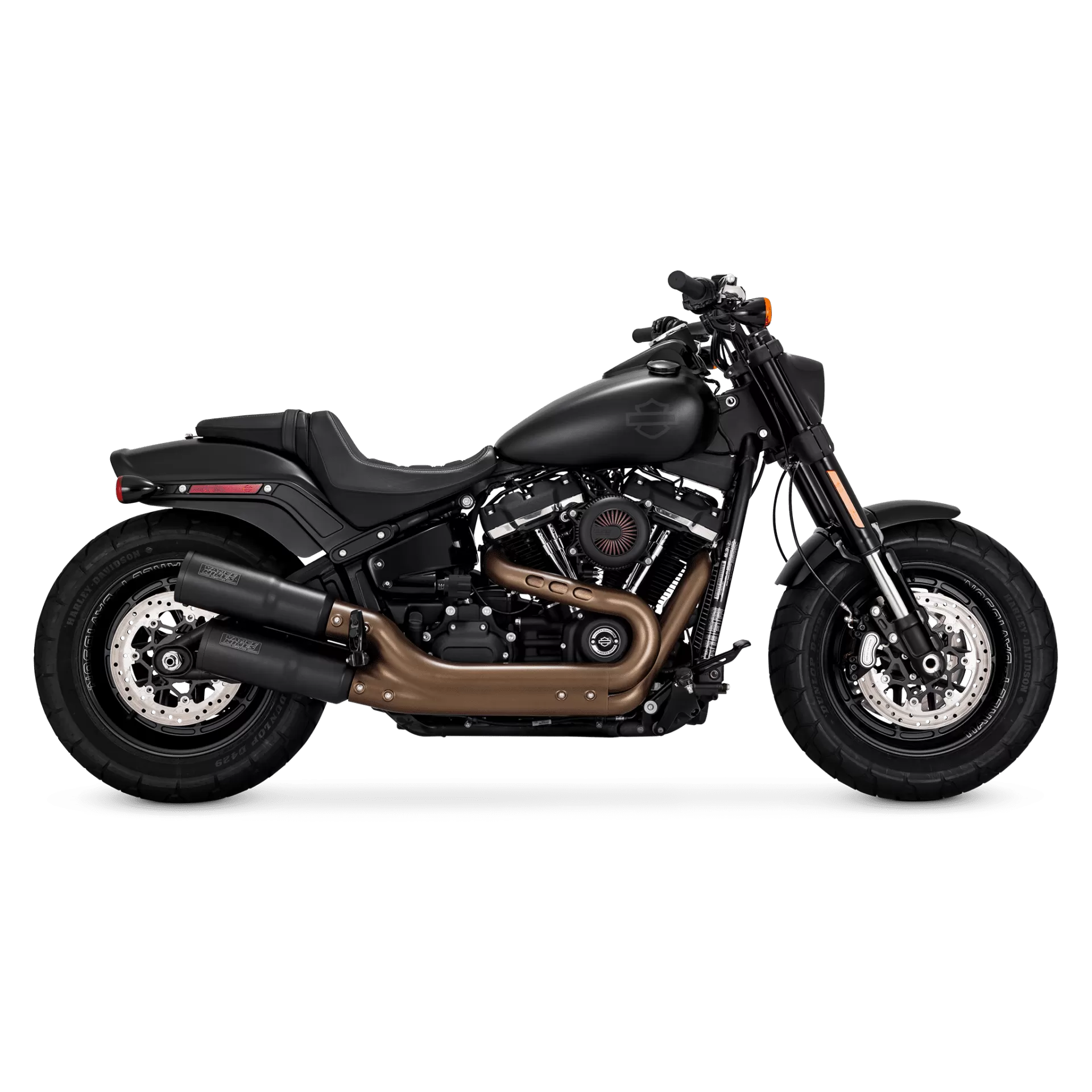 Give your Milwaukee-Eight Fat Bob the hot rod rumble to match its hot rod performance with Hi-Output Slip-ons. Stepped, stacked and staggered, these blacked-out slip-ons are right on point for the radically styled Fat Bob.