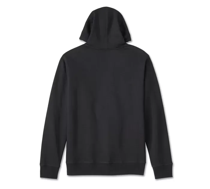 For casual comfort and elevated H-D™ style, our Bar Font Zip-Up Hoodie does not disappoint. Its relaxed fit is constructed from cozy cotton/polyester fleece. This men’s zip front hoodie gets its next-level looks from a contrast jersey hood lining that synchs with our bold appliqué branding.