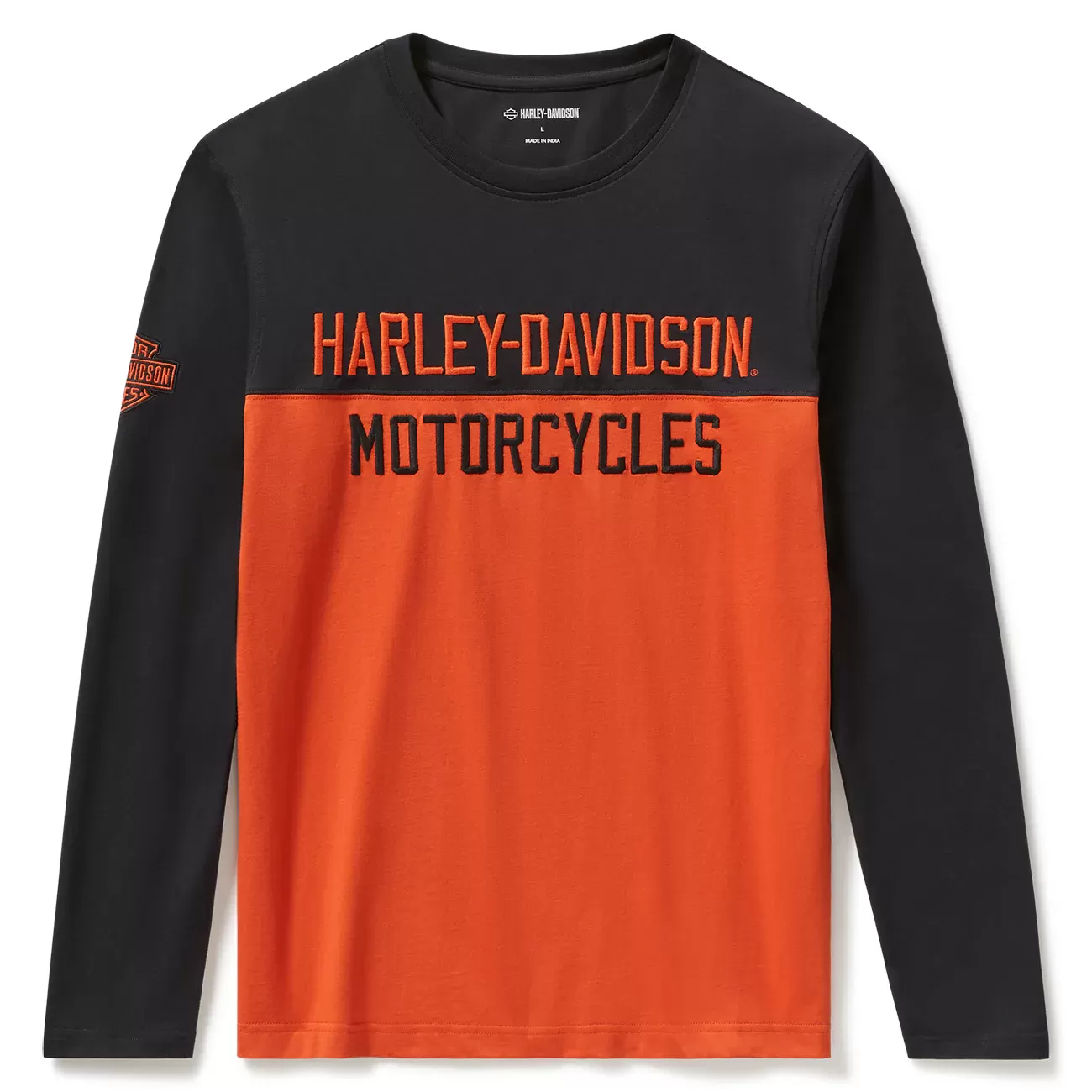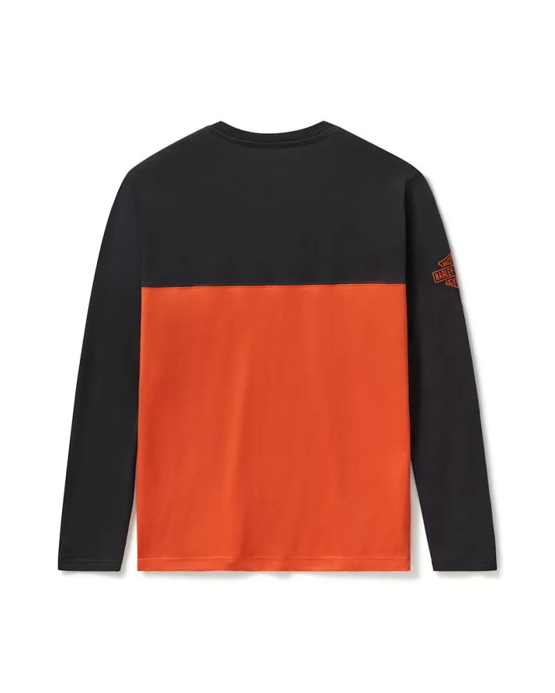 Crafted from premium 100% cotton midweight jersey, this Harley-Davidson essential delivers comfort that lasts. The striking colorblock design with contrasting fabric piecing creates bold visual appeal, while the ribbed neckline ensures a refined fit. Direct embroidery graphics showcase authentic H-D branding with durability that withstands everyday wear. Perfect for riders and enthusiasts who demand quality construction and timeless style in one versatile piece.