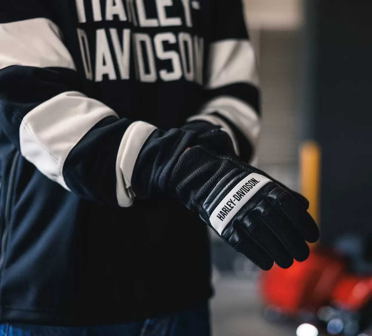 Keep a grip on style and comfort in our H-D® Dyna Knit Riding Gloves. They’re wisely designed with a mix of supple goatskin leather and innovative knit sections to move with you. These touchscreen-compatible men’s motorcycle gloves also have D3O® Ghost™ armor at the knuckles for lightweight impact protection. Their classic yet contemporary look is finished with contrast piecing and a hit of our graphics.