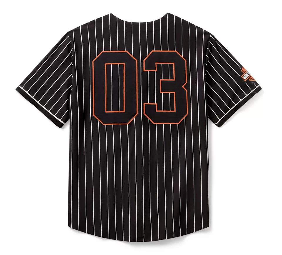 Sporty, enthusiast style is a homerun in the H-D® Essential '03 Baseball Jersey. It’s made durable yet breathable from heavyweight cotton pinstriped jersey with a branded button front. The contrast styling and graphics come together for an enduring look that cheers on our 1903 inception date and motorcycling legacy.
