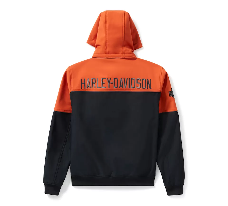 Design Details: Removable, zip-off hood with toggle cord and chin guard. Colorblock styling with contrast piecing. Contrast piping. Rib-knit cuffs and waistband.