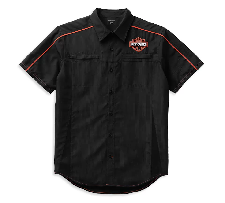 Stand up to scorching temps with this tough-as-nails button up. The Performance Bar & Shield Shirt is made from polyester ripstop and polyester mesh. This one is thoughtfully appointed with mesh underarms and side seam mesh for cooling ventilation. No style shortcuts on this one––look for the embroidered Bar & Shield logo patch paired with bright orange piping.