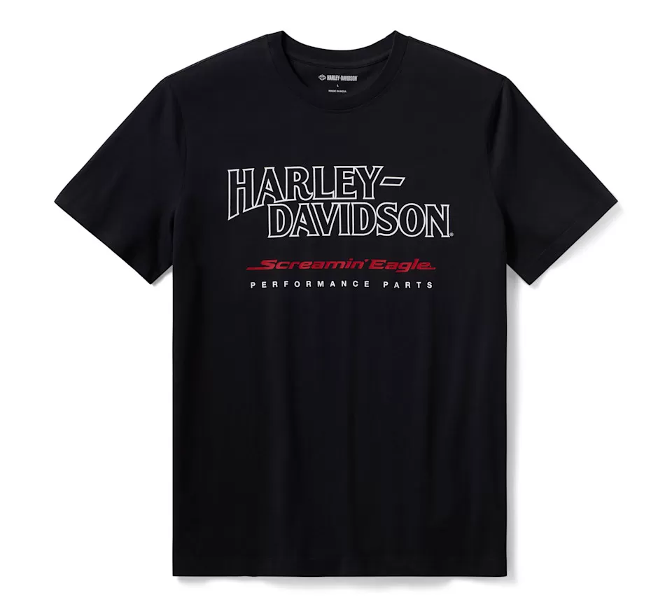 Our Screamin' Eagle® Graphic Tee is a casual fave for riding performance junkies. Made for longwearing comfort from soft and breathable cotton jersey, this men’s t-shirt has a rib-knit neckline to help keep its shape. Filled with graphics on front and back for a bold, racing-inspired look.