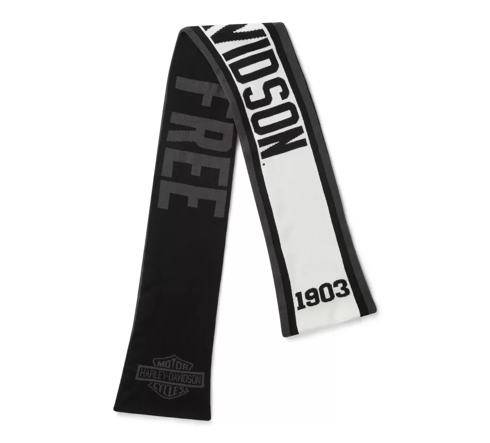 There are two routes to moto style in our Harley-Davidson® Ride Free Scarf. It’s crafted from an acrylic-based yarn blend that delivers warmth without the itch of wool. This knit outerwear accessory is reversible so you can sport whatever option you’re feeling—our branding and inception date, or your mantra for every open-road adventure.