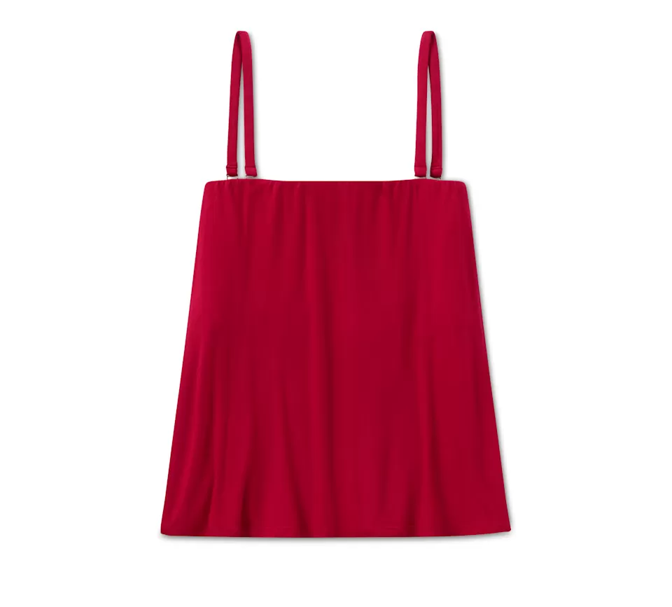 Design Details: Blousy silhouette. Removable spaghetti straps. Interior bra shelf. Turnback hem.