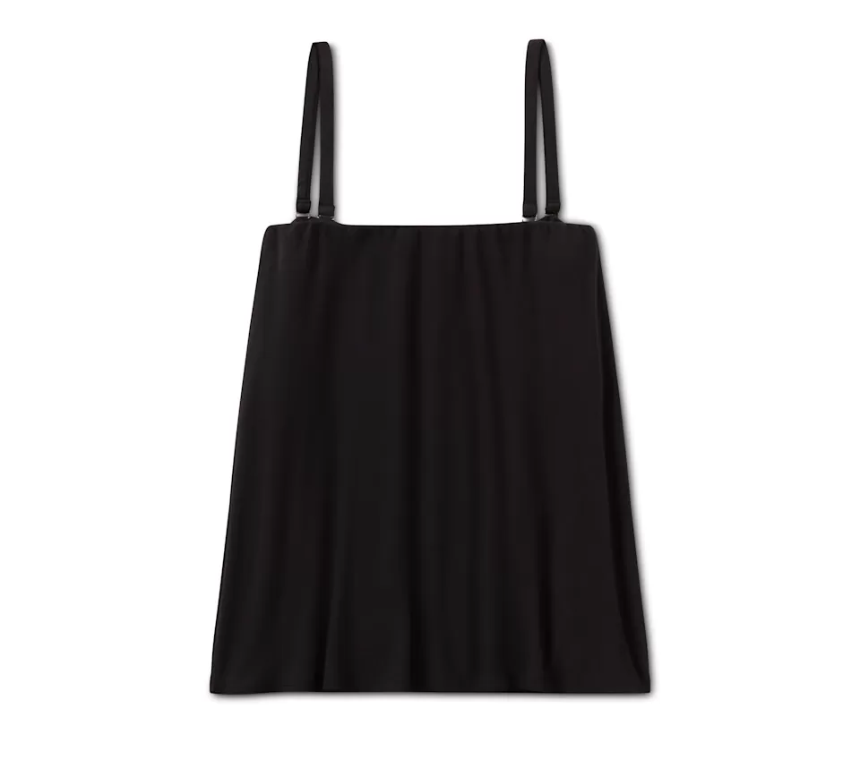 Design Details: Blousy silhouette. Removable spaghetti straps. Interior bra shelf. Turnback hem.