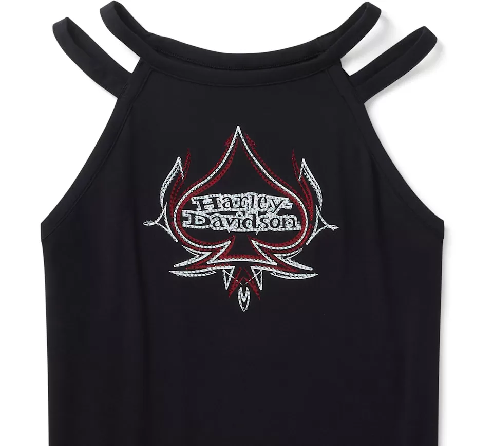 Head-turning style is in the cards for you with this special edition. Our Bling Spades Strappy High Neck Tank is built from 225-gsm rayon jersey for a super soft feel with a hit of spandex for added stretch, and shoulder straps for an elevated look. It’s finished with gorgeous, spade-inspired graphics drenched in rhinestones. Get yours ASAP.