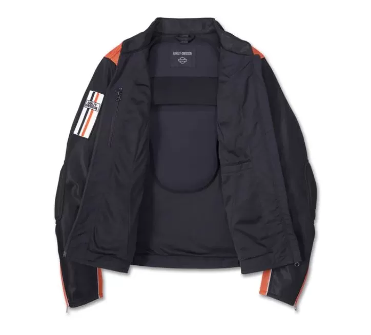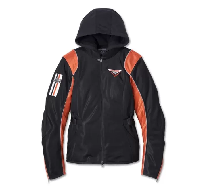 Racing-inspired style intersects with functional protection in our Cora Mesh 2.0 Riding 3-in-1 Jacket. The jacket is made from sturdy polyester mesh, while the removable hoodie is made from a wear-all-day blend of cotton and polyester French terry. Function comes through in the D3O Ghost Armor included the jacket’s shoulders and elbows, as well as in its action back, pre-curved sleeves, and reflective sleeve piping for added visibility. Wear the jacket alone, with the hoodie, or the hoodie by itself—it’s a must-have for road trips and rallies either way. The jacket’s designed with a rider-friendly mandarin collar, reinforced elbow patches, and a mix of embroidery that honors our racing heritage. School yourself on all of its features in the specs below…