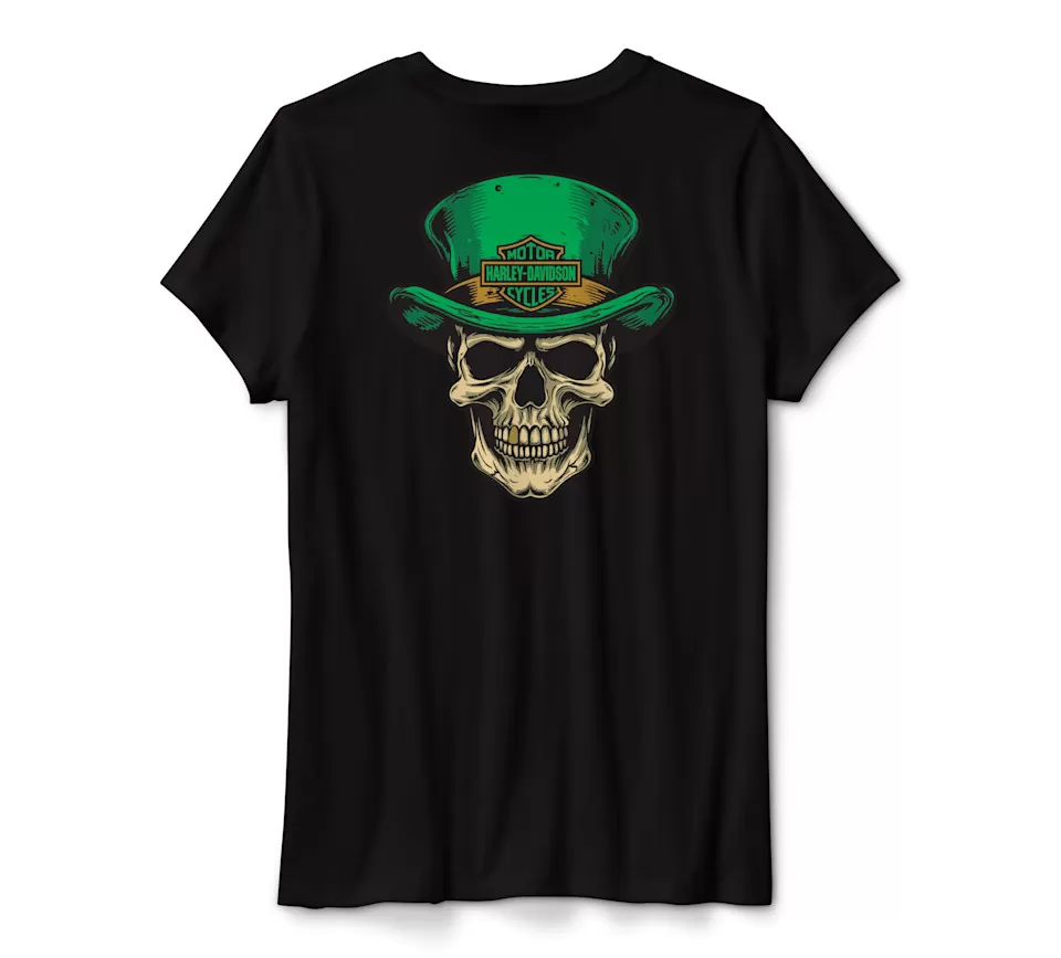 Irish luck meets moto pride on our limited-issue Skully McGee Short Sleeve Crew Tee. It’s crafted from a breathable, super soft cut of 100% cotton jersey with a rib-knit crew neckline to help keep its shape. What makes this a standout seasonal t-shirt are the graphics parked on both sides. In fact, even Skully McGee’s tooth shines in metallic ink (zoom in to see). Stay lucky—snag yours while supplies last.